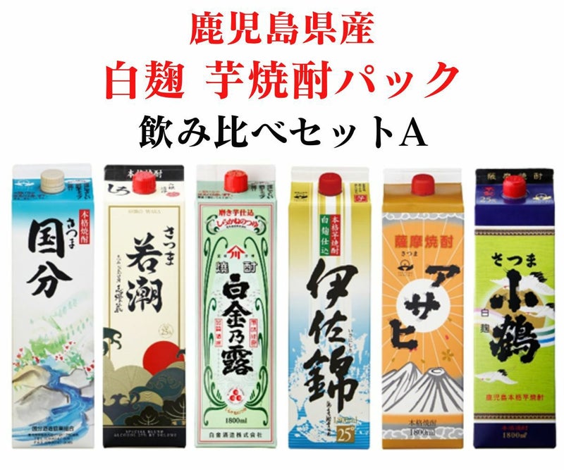 【送料無料】 鹿児島県産 白麹 芋焼酎パック 飲み比べセットA 25度 1800ml×6本