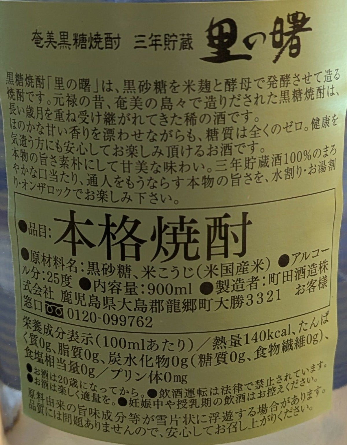 里の曙 黒糖焼酎 25度 900ml 町田酒造