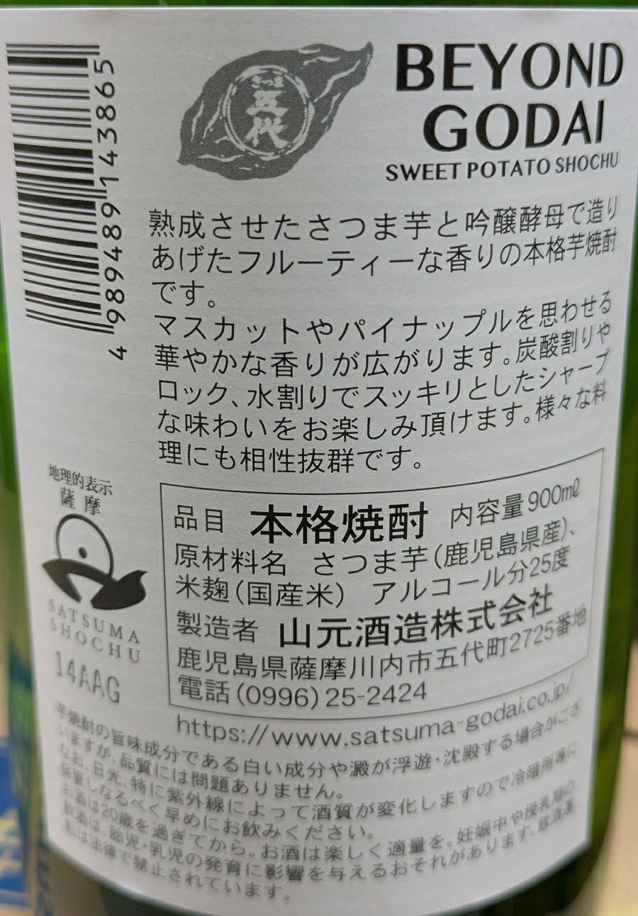 BEYOND GODAI 芋焼酎 25度 900ml 山元酒造