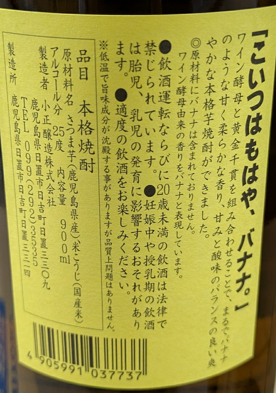 小鶴黄麹 芋焼酎 25度 900ml 小正醸造